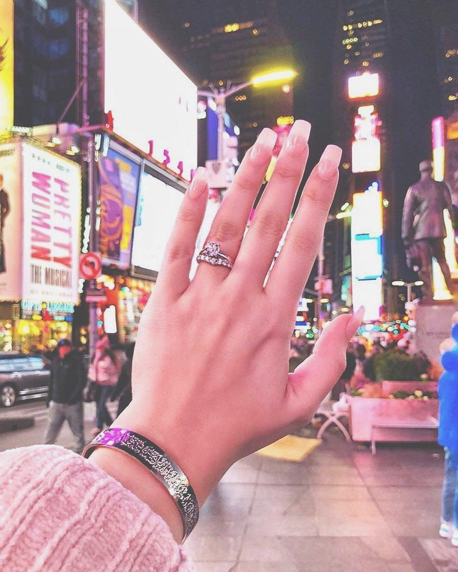 Introducing the AYAT UL KURSI CUFF, a beautiful accessory that combines fashion and faith. Made with high quality materials, it comes in golden, silver, and black, with a one year colour warranty. Elevate your style while keeping the powerful words of Atyul kursi close to your heart.