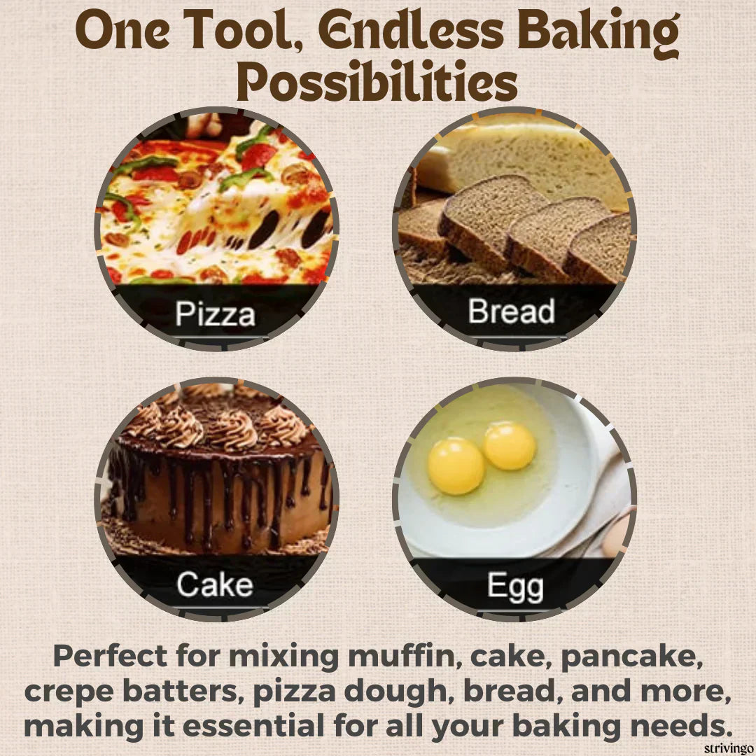 âïžÂ PERFECT MIXING EVERY TIME: Ideal for bread doughs, pancakes, cakes, cookies, waffles, sourdough bread, and pizza dough, ensuring consistent and smooth results.